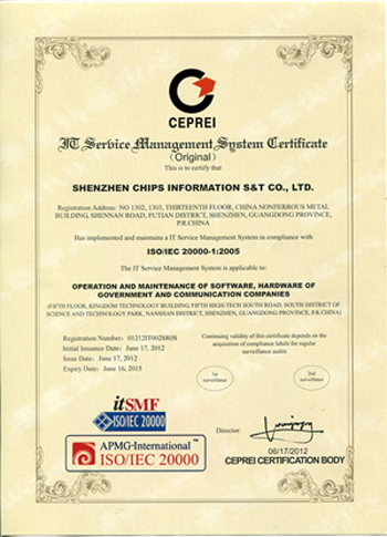 齊普生公司順利通過ISO/IEC20000管理體系認(rèn)證